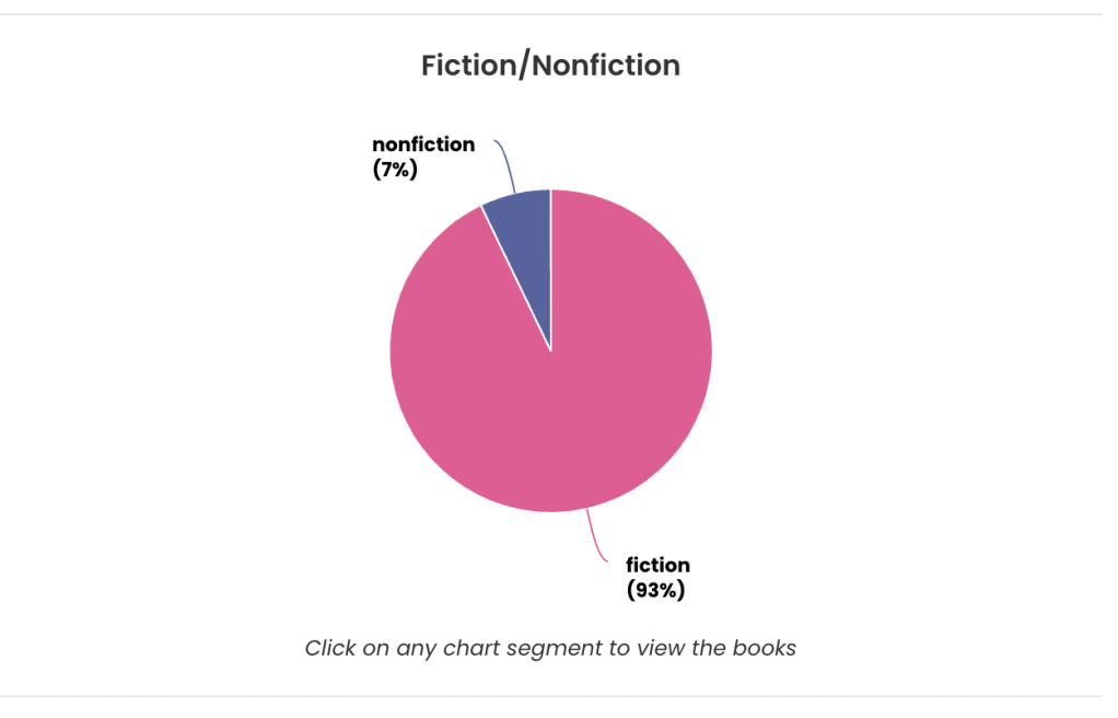The app also records ‘Pace’ and ‘Page Number’ so you can again see what you gravitate towards. The Fiction/Non-Fiction section is cool too, and I definitely would like to read more non-fiction in the coming year.