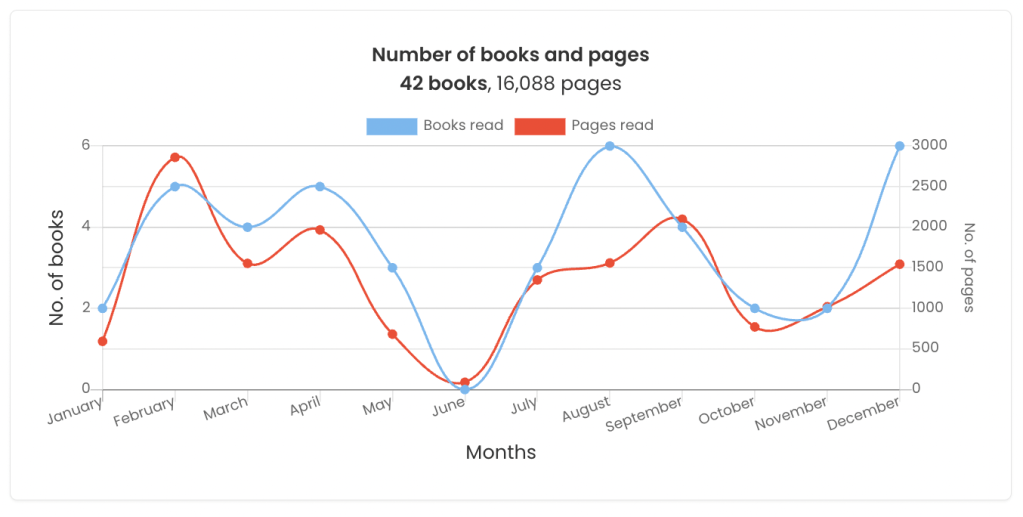Another great feature is the year-long spread of your reading habits. You can see that I was exhausted with reading by June!